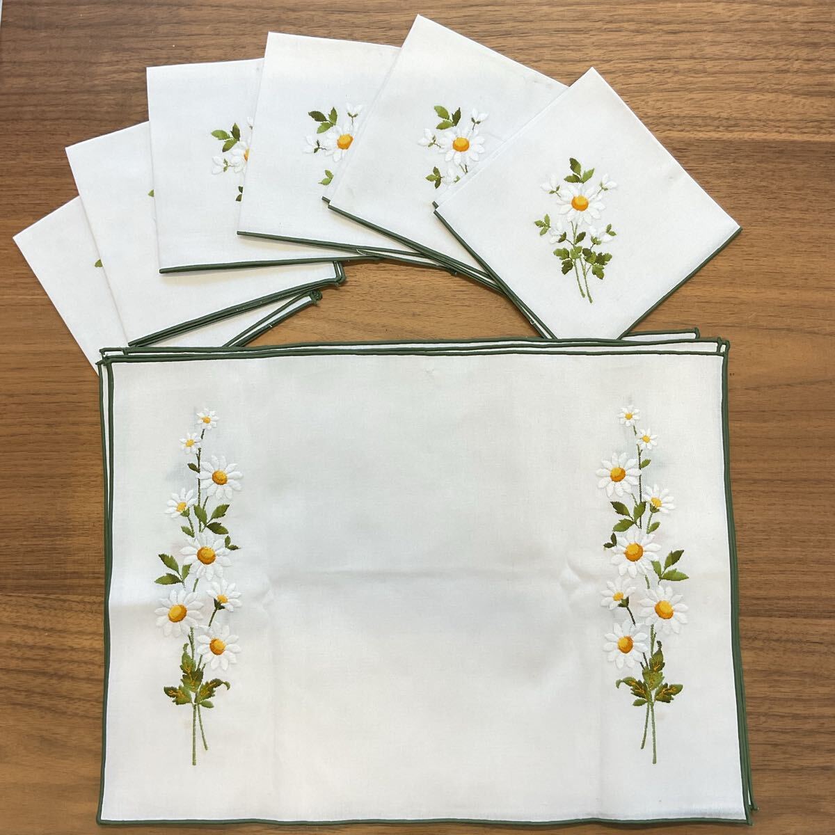 - 【K-2595】 花柄 刺繍 ランチョンマット ナフキン テーブルクロス