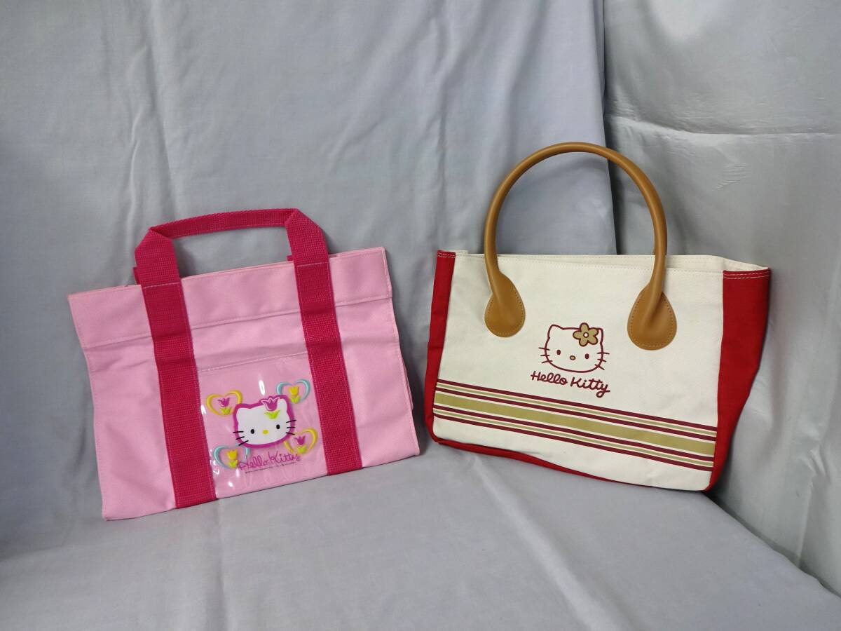 - ハローキティ トートバッグ 2個セット キャンバス生地 マツヤデンキ 50周年記念 2001年 オンワード樫山 2004年 ピンク 白 赤