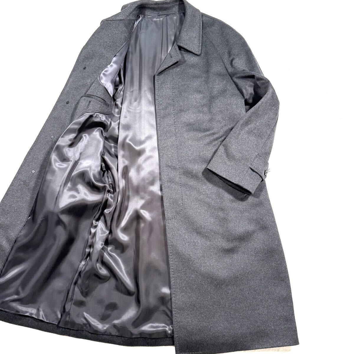 > 繊維の宝石 未使用級/■カシミヤ100% PIERRE BALMAIN ピエールバルマン ステンカラーコート 比翼 メンズL ロング丈 グレー 艶 ビジネス