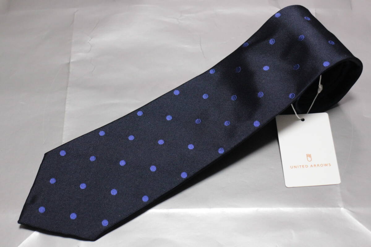 > ユナイテッドアローズ新品ネクタイ超美麗艶ネイビー*ロイヤルブルードット高密ツイル織ハンドメイド使い勝手抜群大人気柄