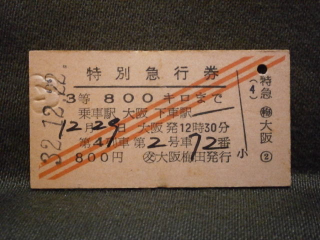 - 国鉄 大阪駅発 3等 第4列車 特別急行券