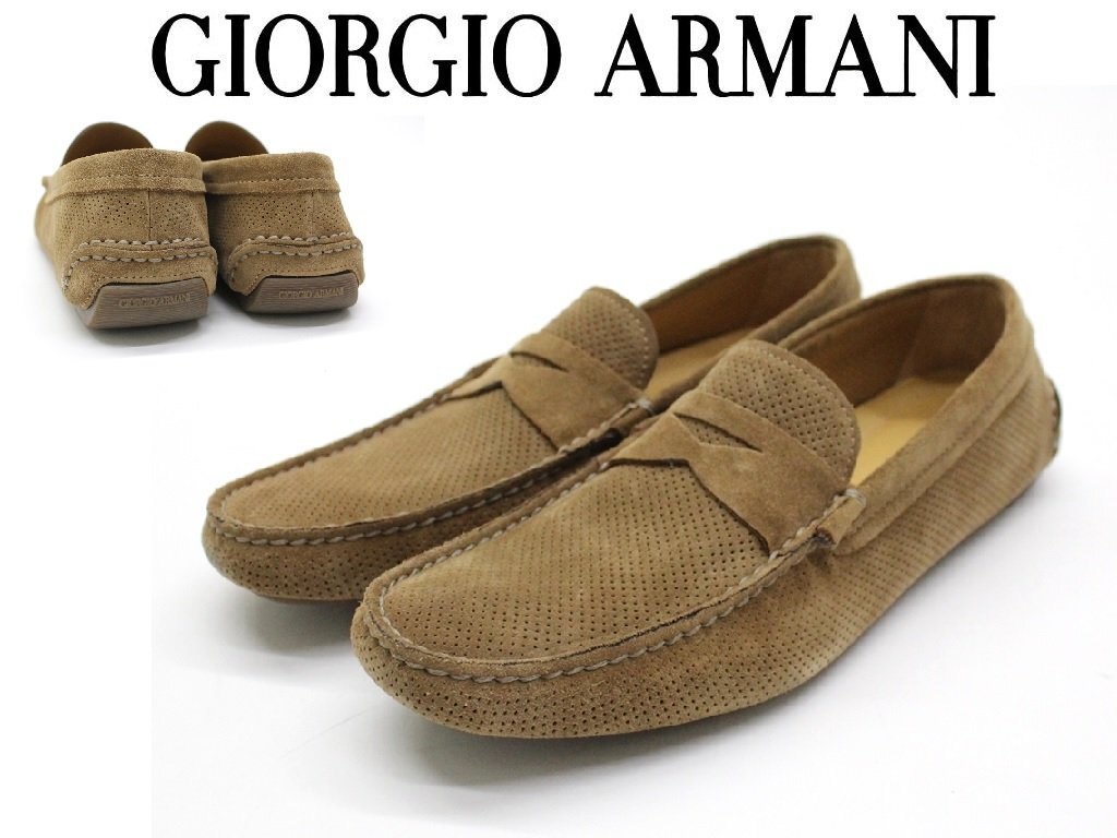> ●13万新品◆6=25cm◆GIORGIO ARMANI アルマーニ イタリア製スエードローファー薄茶 1円