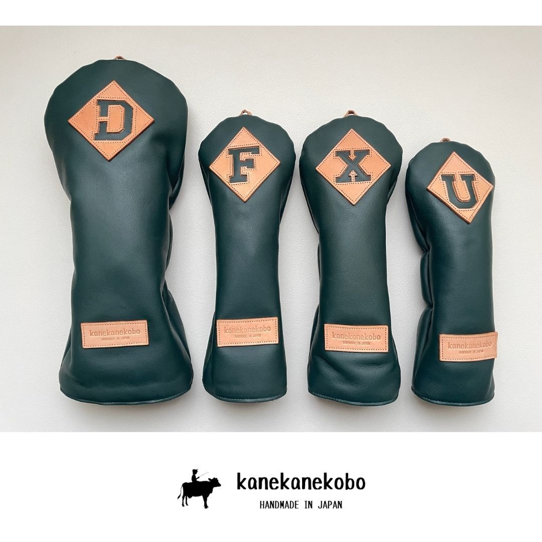 - 在庫処分 本革ヘッドカバー4本セット シュリンクディープグリーン牛革 国産ヌメ革使用 kanekanekobo