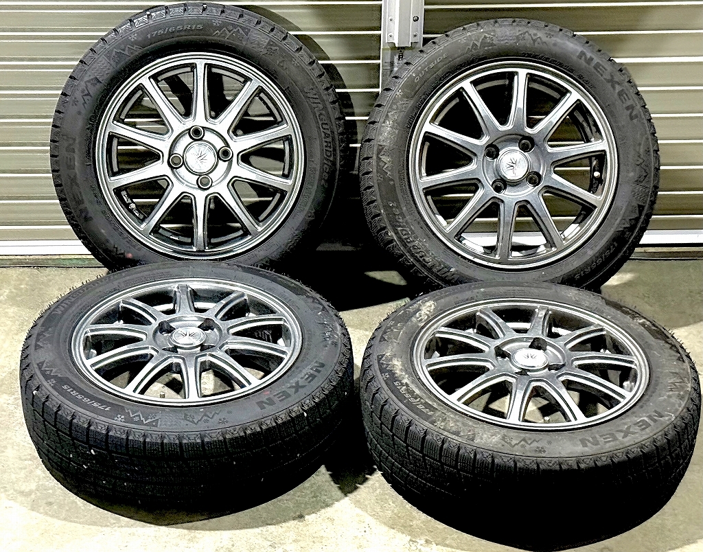 - ロクサーニ 中古アルミホイール LOXARNY SPORT 15×5.5J 4穴 P.C.D100、冬タイヤ付属(NEXEN WINGUARD ICE2 175/65R15)、4個口発送