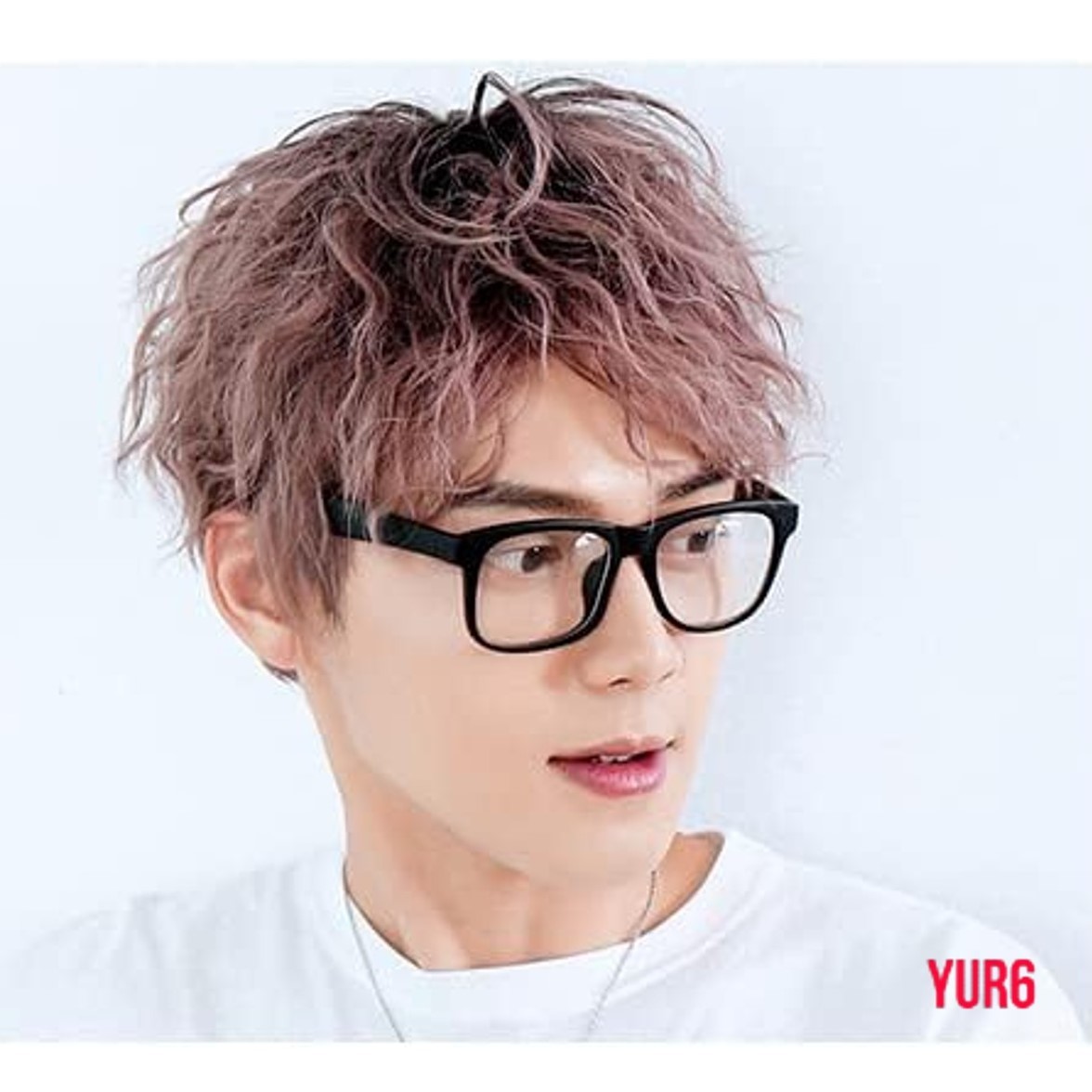- パーマウィッグ ゆるふわ メンズショートウィッグ かつら フルウィッグ 耐熱 カール ウェーブ 男装 普段使い ブラック×アッシュピンク