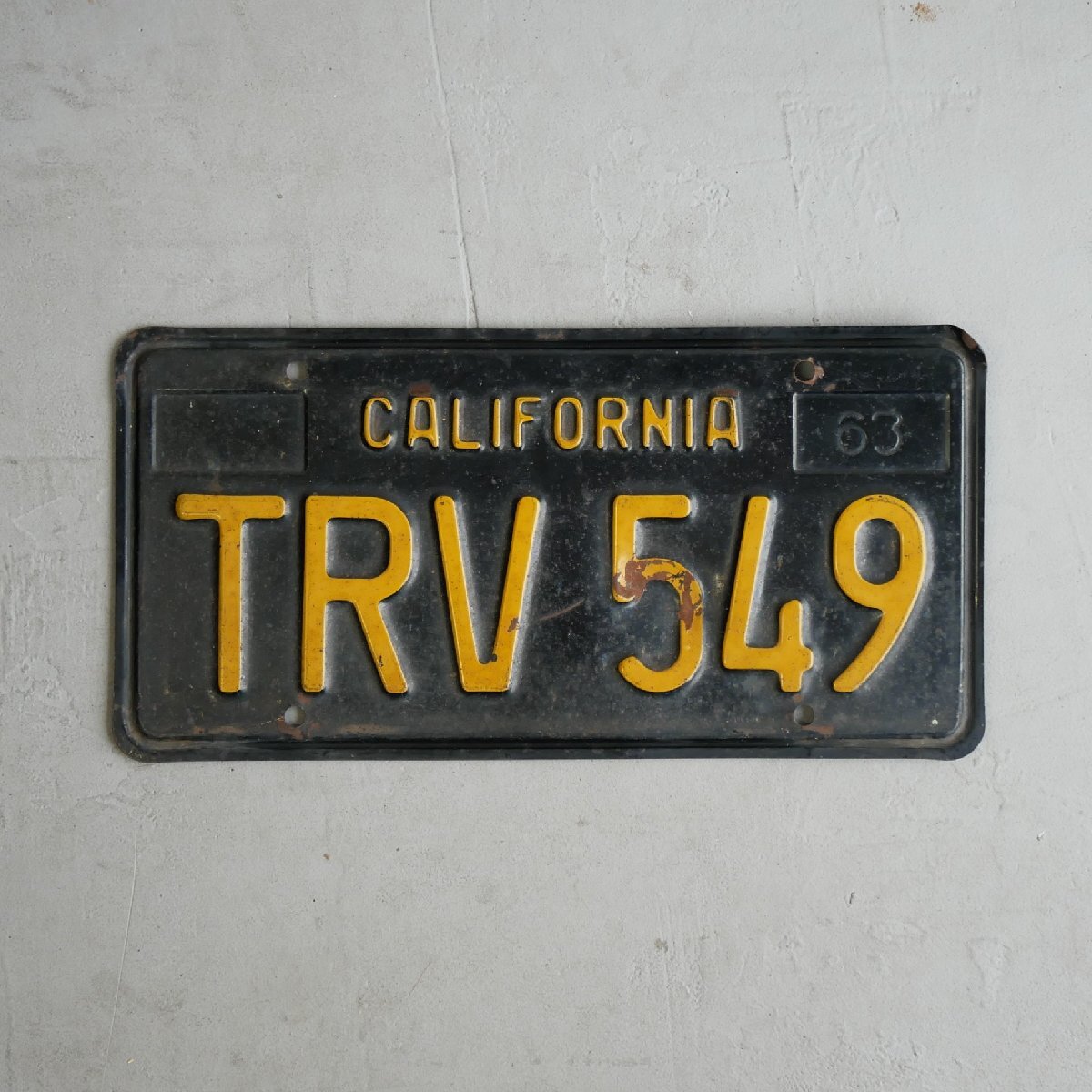 > 1963年 アメリカ ヴィンテージ ナンバープレート / カリフォルニア州 ブラック×イエロー ガレージ ディスプレイ小物 #705-10-249-393