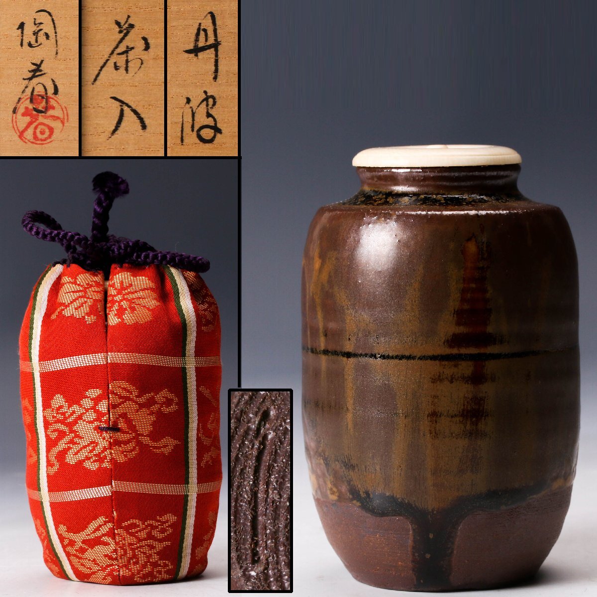 【佳香】石田陶春 丹波茶入 共箱 仕覆 茶道具 本物保証拍卖