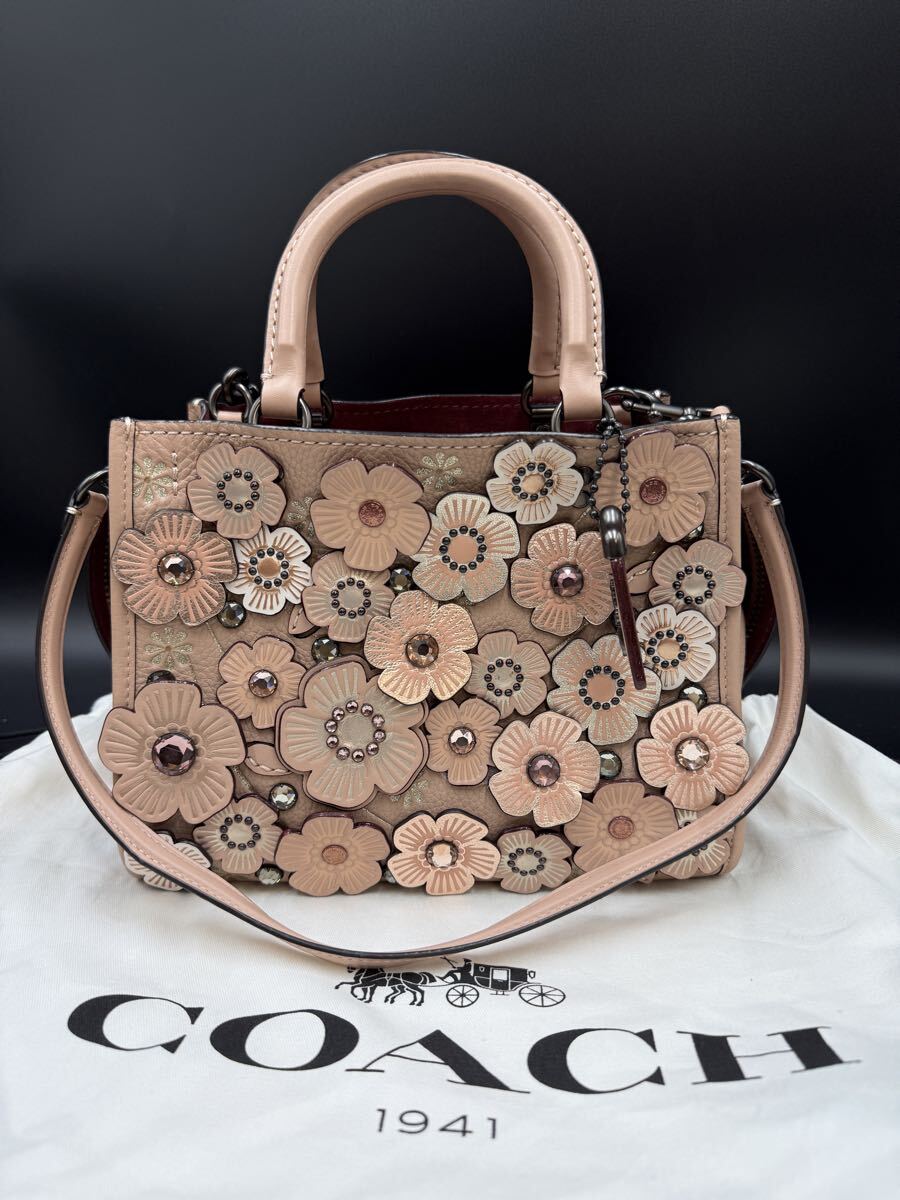 - 【美品】COACH ハンドバッグ ショルダーバッグ 2way 花柄 トートバッグ レザー ピンク ローグ25