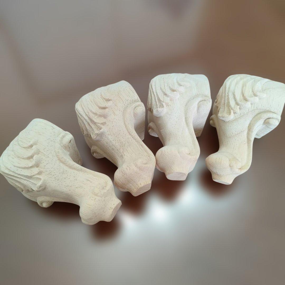 - 木製彫刻 彫刻家具脚 4個セット 無塗装 DIYリフォーム 交換 高さ調整用