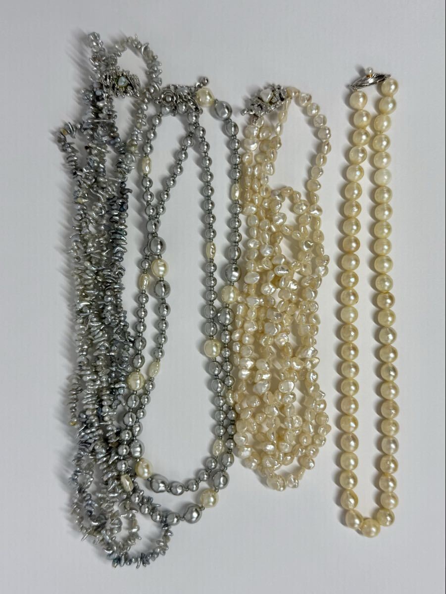 > O)天然パール 淡水パール ネックレス 4点セット 留め具SILVER刻印※一部除く 本真珠 アクセサリー フォーマル 冠婚葬祭 ファッション