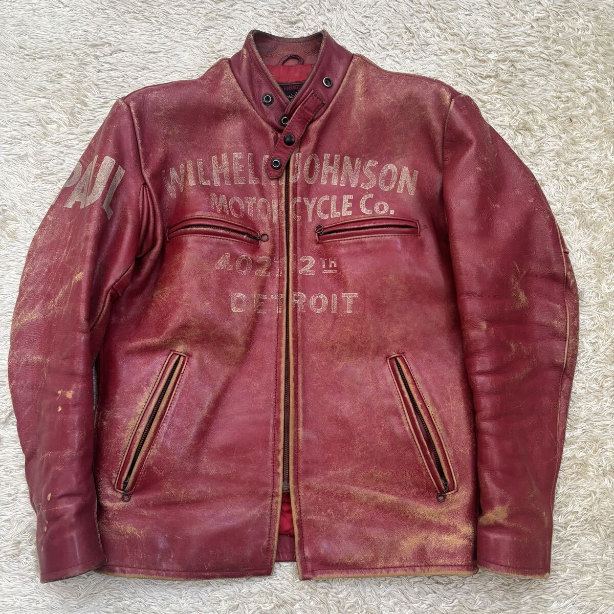 - ドッグファイト レザー シングルライダースジャケット レザー ヴィンテージ レッド