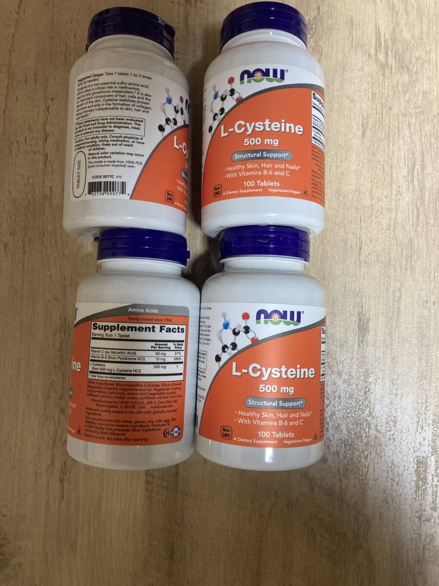- 一粒にL-Cysteine 500mg 100粒 NOW ナウ エル システイン 期限2030年以降 4点 送料無料 匿名配送