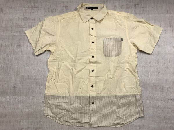 - ビラボン BILLABONG レトロ ストリート サーフ 古着 ストライプ×無地 バイカラー 切替 半袖シャツ メンズ L 黄色