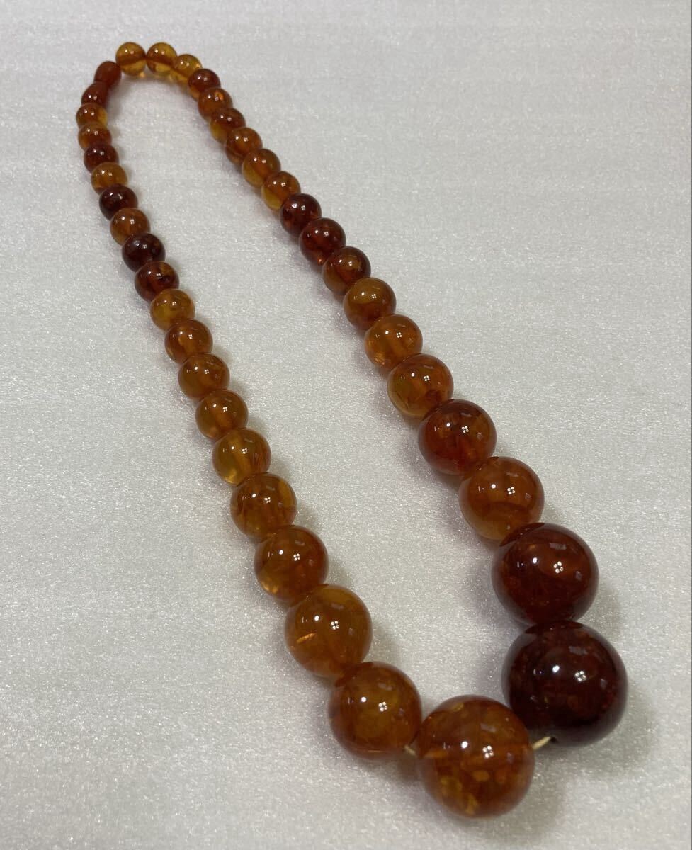 - T10-002・美品★琥珀こはくネックレス*(粒・約1㎝〜2.2㎝)★長さ・約48cm*レディースアクセサリー