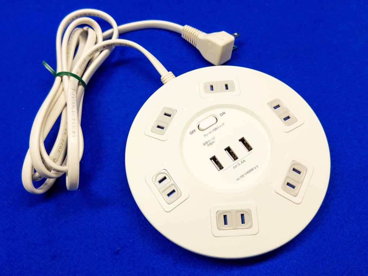 ○品名:ELPA 耐雷丸形USBタップ 電源タップ WLS-LS602RUSB(W)