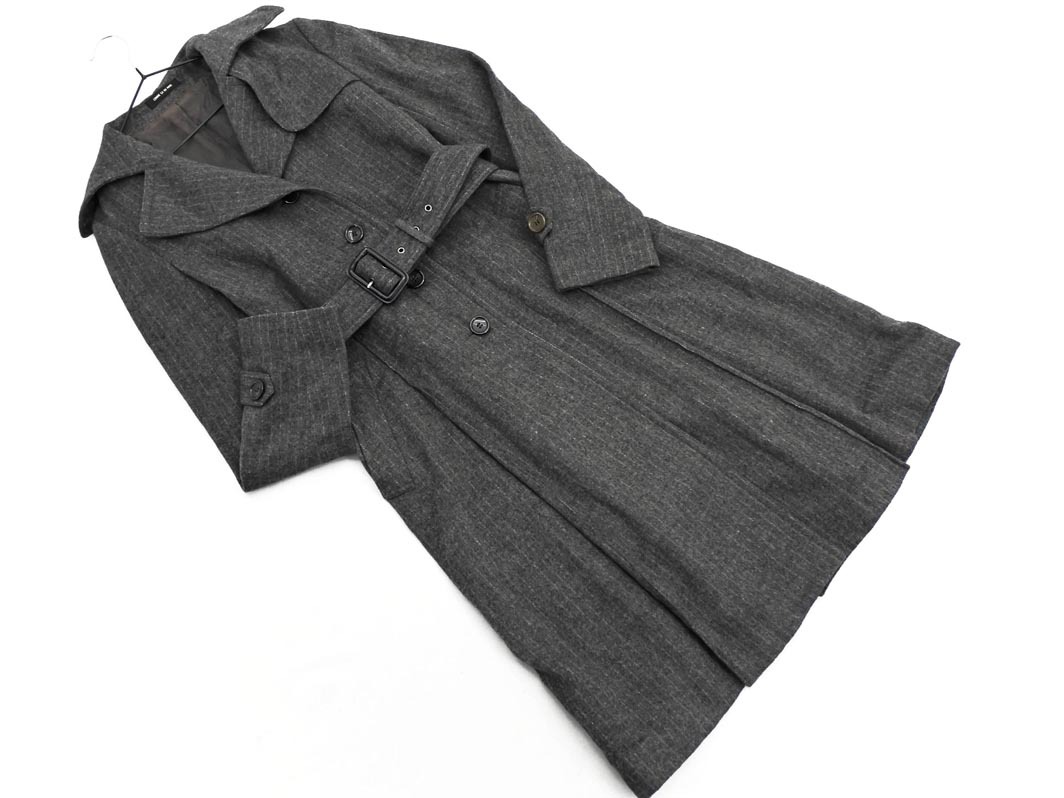 > COMME CA DU MODE コム サ デ モード カシミヤ アンゴラ混 ベルト付き ストライプ ロング コート size9/グレー ◇■ ☆ fjc9 レディース
