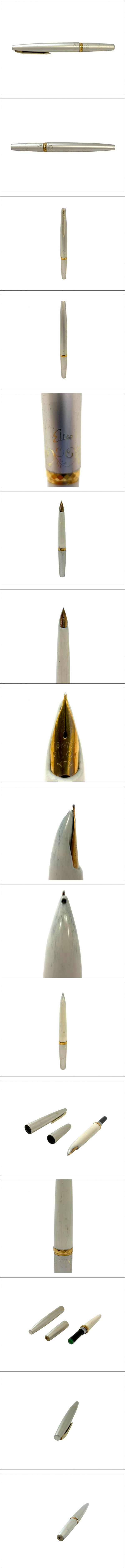 > (U) PILOT/パイロット Elite 万年筆 ペン先 18K-750 シルバー×ゴールド×ホワイトカラー 文房具 イニシャル入り 現状品 (60028OT4)