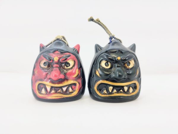 - サ/ 佐渡 なまはげ風 鬼太鼓 2点セット 土鈴 オニ 置物 /HY-1248