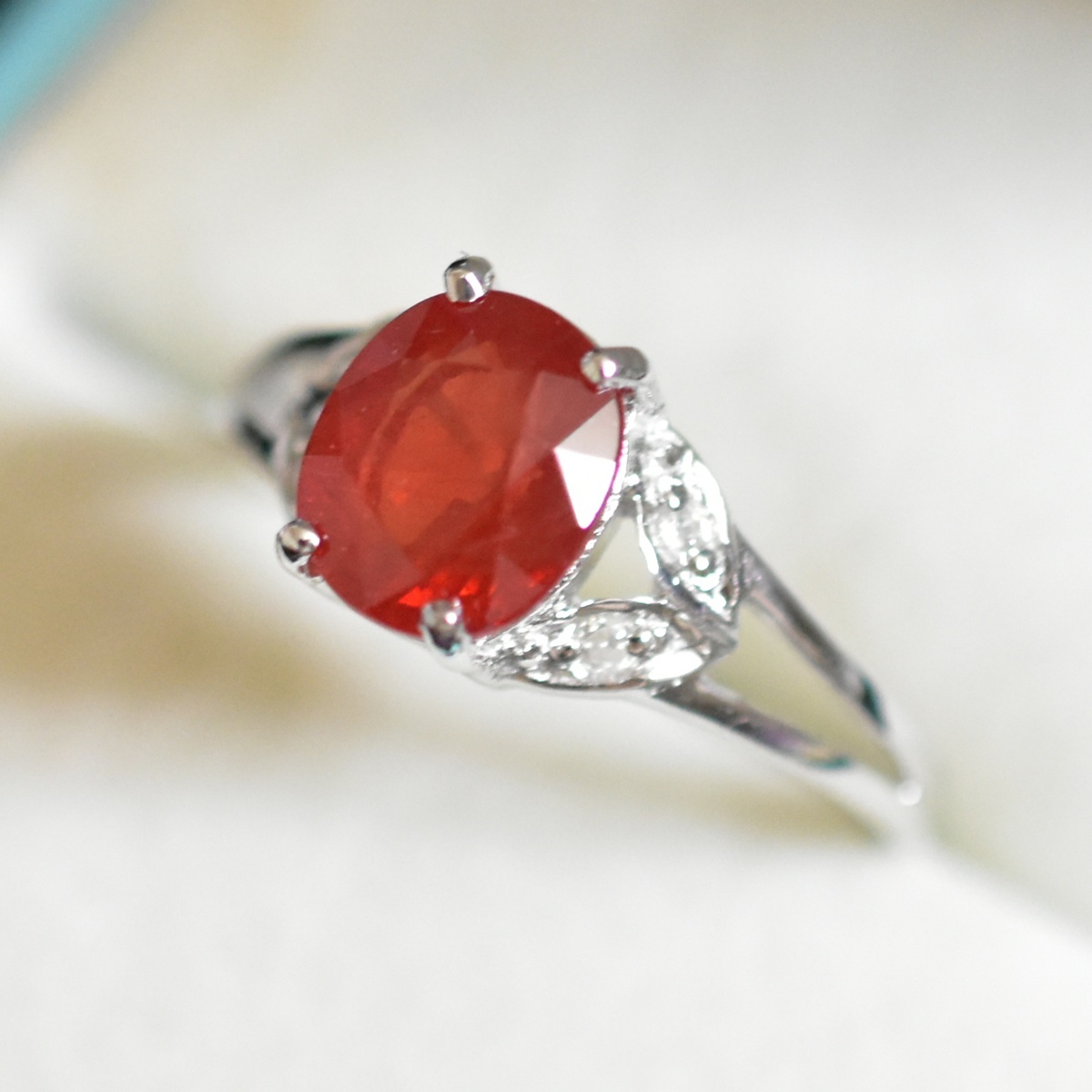 > 2005年製刻印 K18/750刻印 大粒オレンジサファイアとダイヤモンドのホワイトゴールドリング 14.5号 本物保証