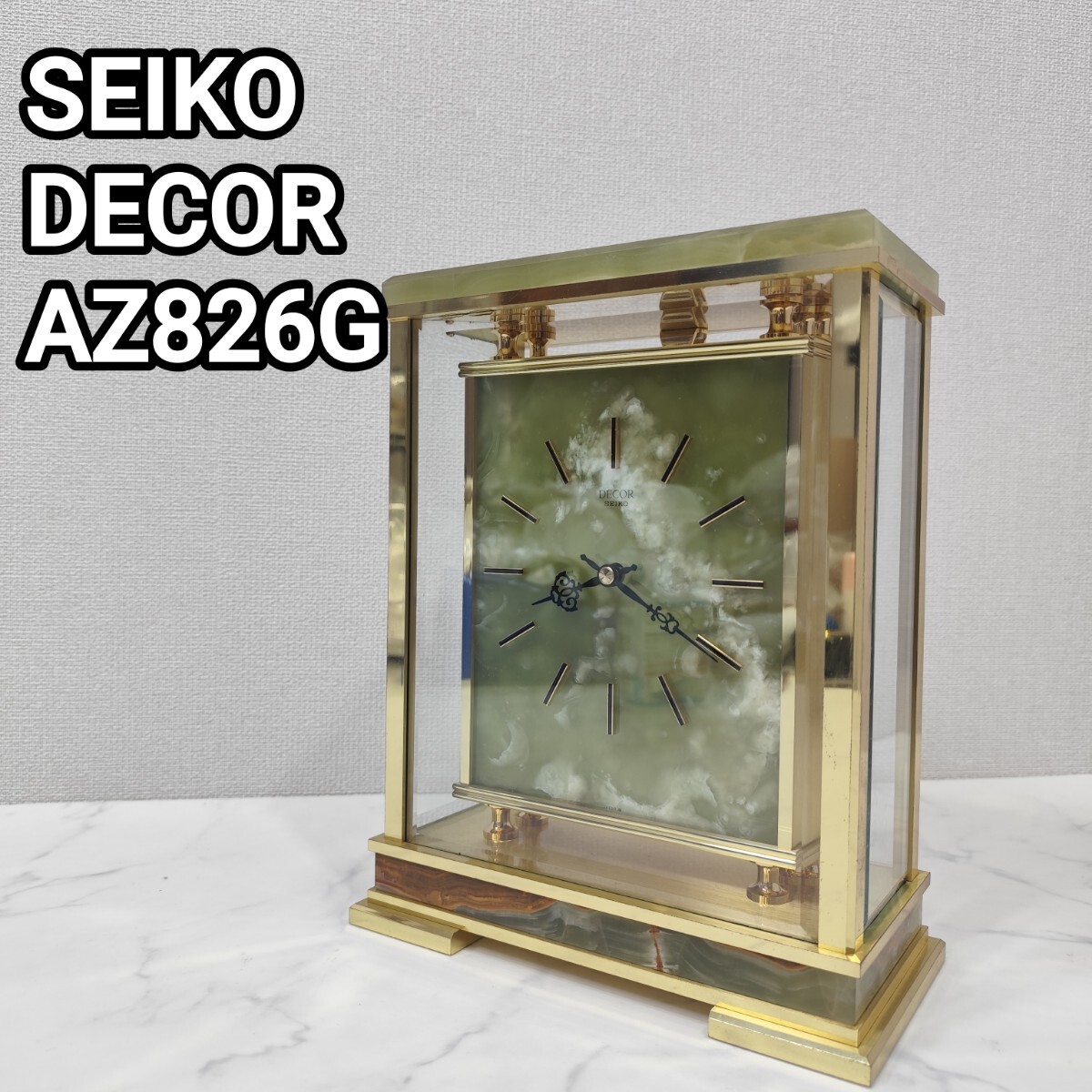 > 超激レア 動作品 SEIKO セイコー 置時計 DECOR デコール AZ826G オニキス 大理石 高級時計 ゴールド クォーツ インテリア 置き時計