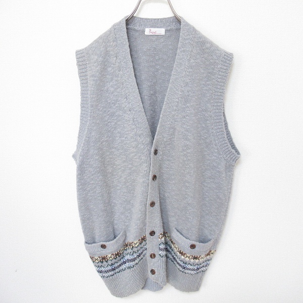 ◎商品名(タイトル):パパス PAPAS ニットベスト フェアアイル リネン混 メンズ [x972833ss]◎ブランド名:パパス PAPAS◎アイテム名:ニットベスト◎サイズ:-◎性別:メンズ◎カラー:グレー系◎素材:画像をご参照ください◎実寸サイズ:肩幅約 41cm・着丈約 68cm・胸囲約 56cm×2◎商品コメント:★当店の商品はすべてリユースアイテムとなります。特質上、些細なダメージは記載しておりませんので着用に問題のない使用感、着古した雰囲気などはご了承くださいませ。◎コンディションレベル:やや傷や汚れあり◎コンディション備考:各所に薄い汚れがございます。(画像3参照)キーワード/アクイール/古着/used/ビンテージ/ヴィンテージ/昭和/レトロ/ビービーケーケー/麻