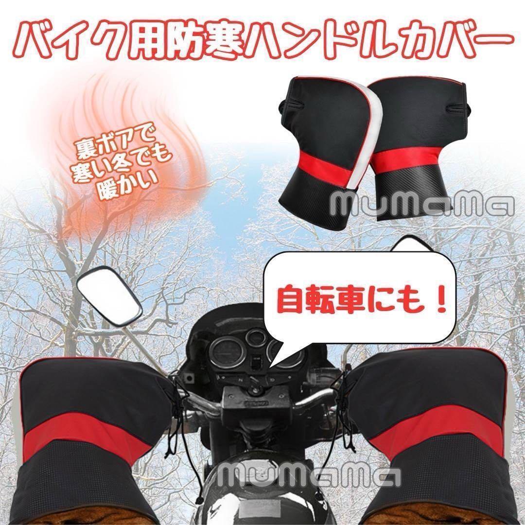 - ハンドルカバー バイク 防寒 裏ボア 自転車 原付 スクーター 防水 反射板
