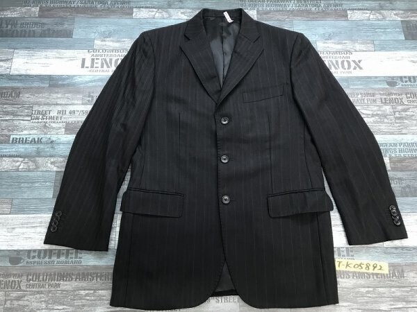 - MITSUMINE ミツミネ メンズ ストライプMIX 肩パッド サイドベンツジャケット 秋冬 A5 チャコールネイビー黒