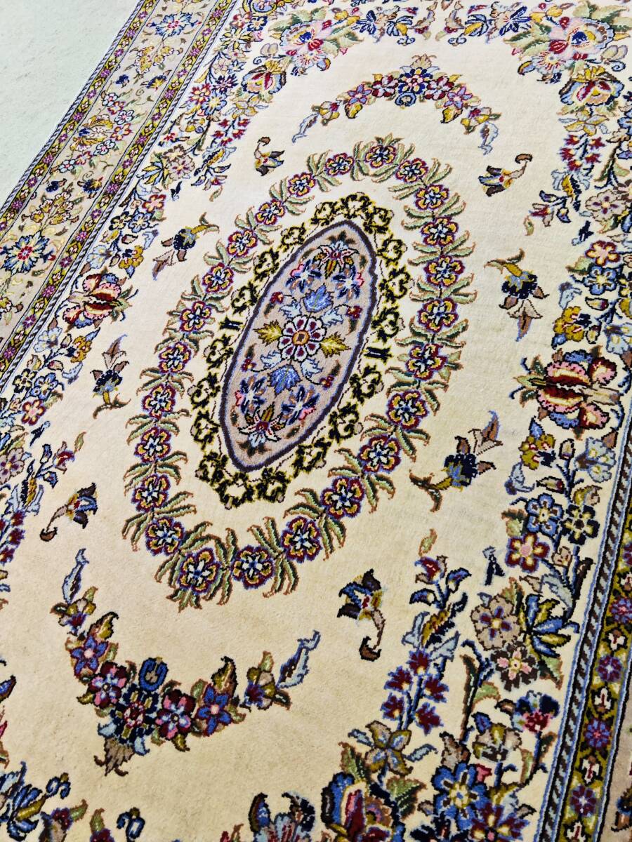 > J320 ペルシャ絨毯 カシャーン コルクウール 手織 125−209cm トルコ絨毯、ヘレケ好きな方へ