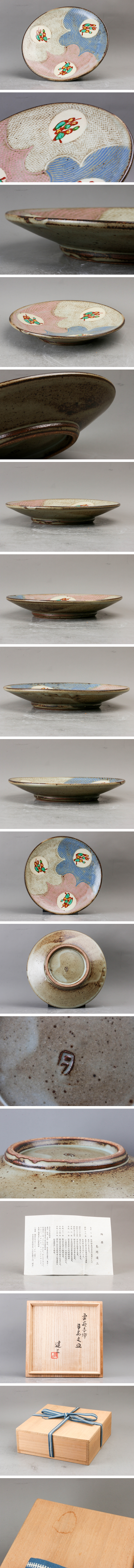 【SAG】人間国宝 島岡達三 象嵌赤絵草花文皿 共箱 栞 本物保証拍卖