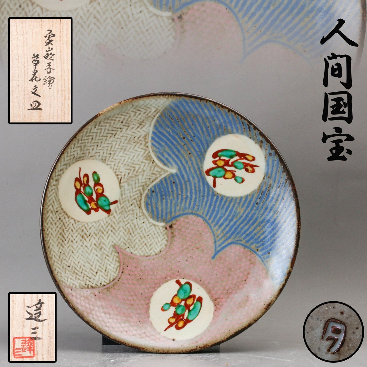 【SAG】人間国宝 島岡達三 象嵌赤絵草花文皿 共箱 栞 本物保証