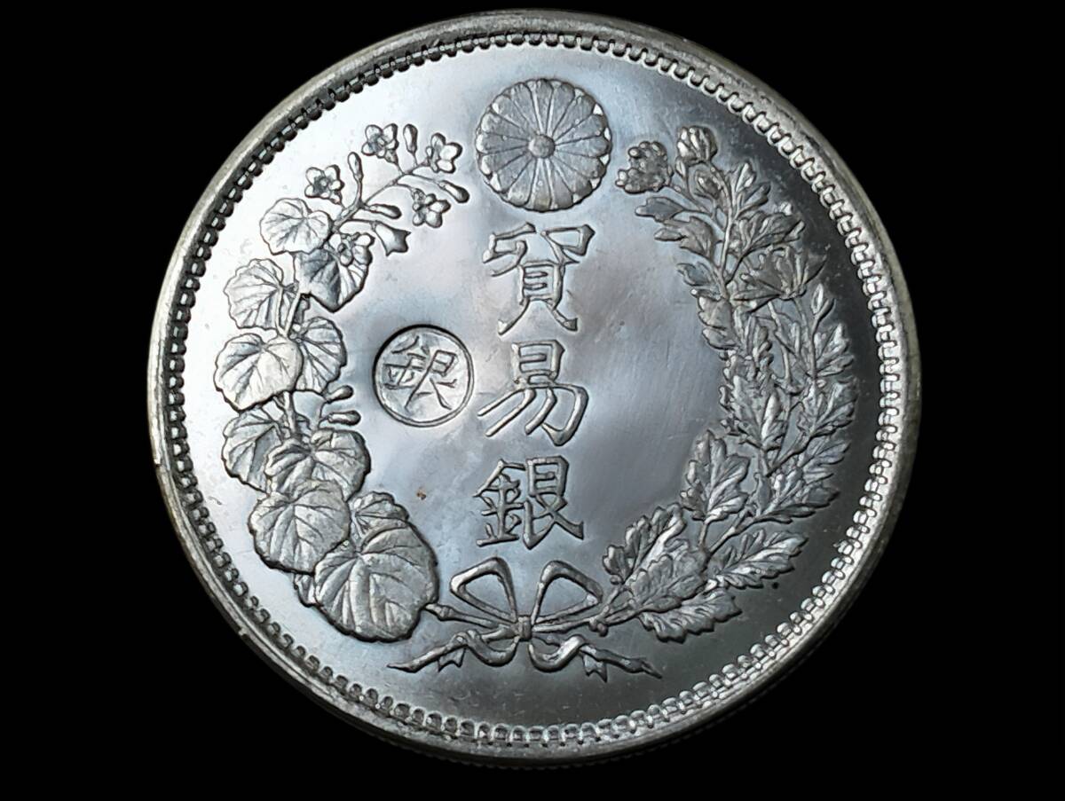 - 1円スタート 極美品 日本硬貨 明治時代 貿易銀 大日本 明治八年 旭日竜 左丸銀 比重:10.05 銀貨