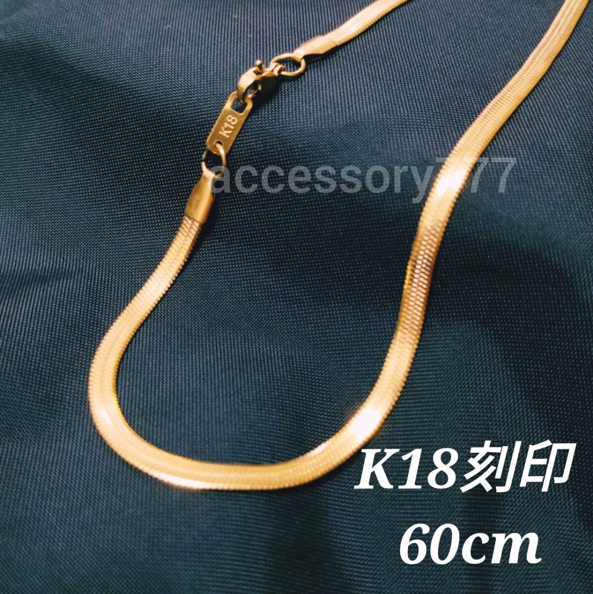 - K18 刻印 ヘリンボーン スネーク チェーン 60cm メンズ ネックレス 18K 18金 喜平 ロープ メンズ