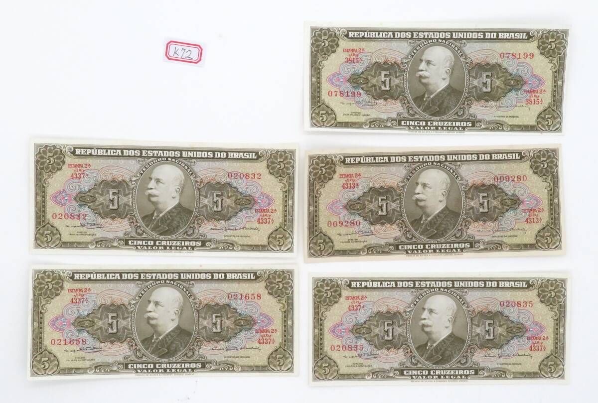 - K72、ブラジル、まとめ5枚 紙幣 古紙幣 旧紙幣 古札 記念 外国紙幣 外国通貨