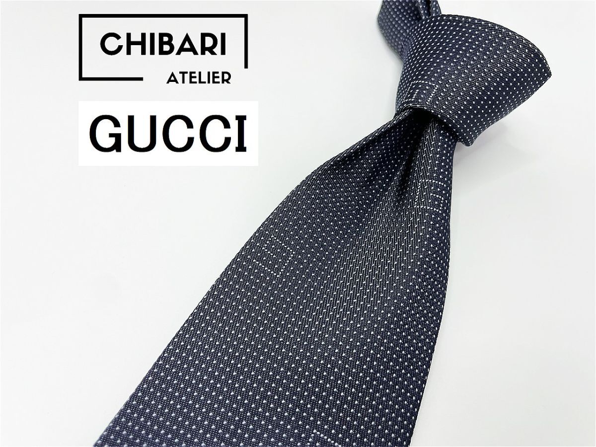 - 【美品】GUCCI グッチ ロゴ&ドット柄 ネクタイ 3本以上 送料無料 メンズ グレイ 1001103