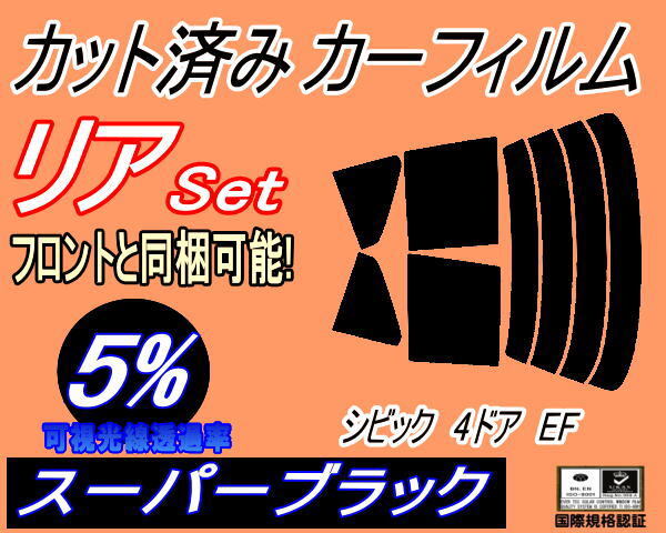 > カーフィルム スーパーブラック カット済み リアセット シビック 4ドア EF (s) スモーク ガラスフィルム EF1 EF2 EF3 EF4 EF5 ホンダ