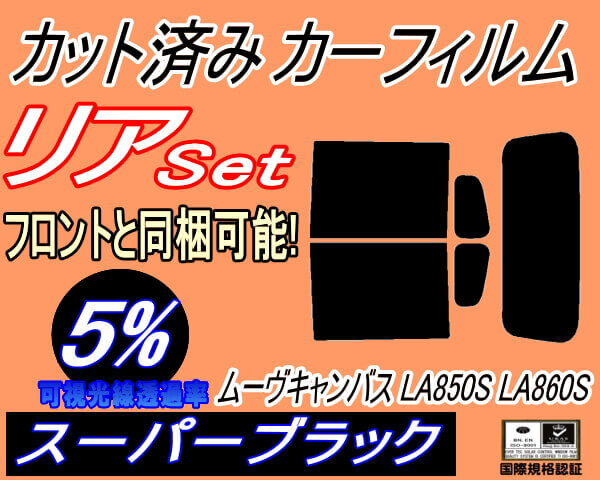 - カーフィルム スーパーブラック カット済み リアセット ムーヴ キャンバス LA850S LA860S (s) スモーク LA850S LA860S ダイハツ