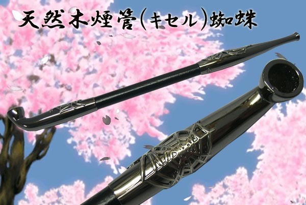 《< 新品 日本製 中尺天然木黒染めキセル(煙管) (約)20cm ガンメタ装飾(スパイダー) >》