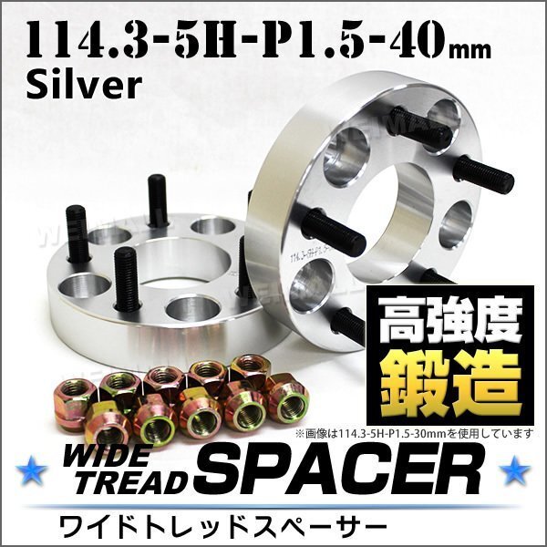 > Durax ワイドトレッドスペーサー 40mm 114.3-5H-P1.5 ナット付 銀 2E トヨタ 三菱 ホンダ マツダ ダイハツ 2枚セット ホイールスペーサー