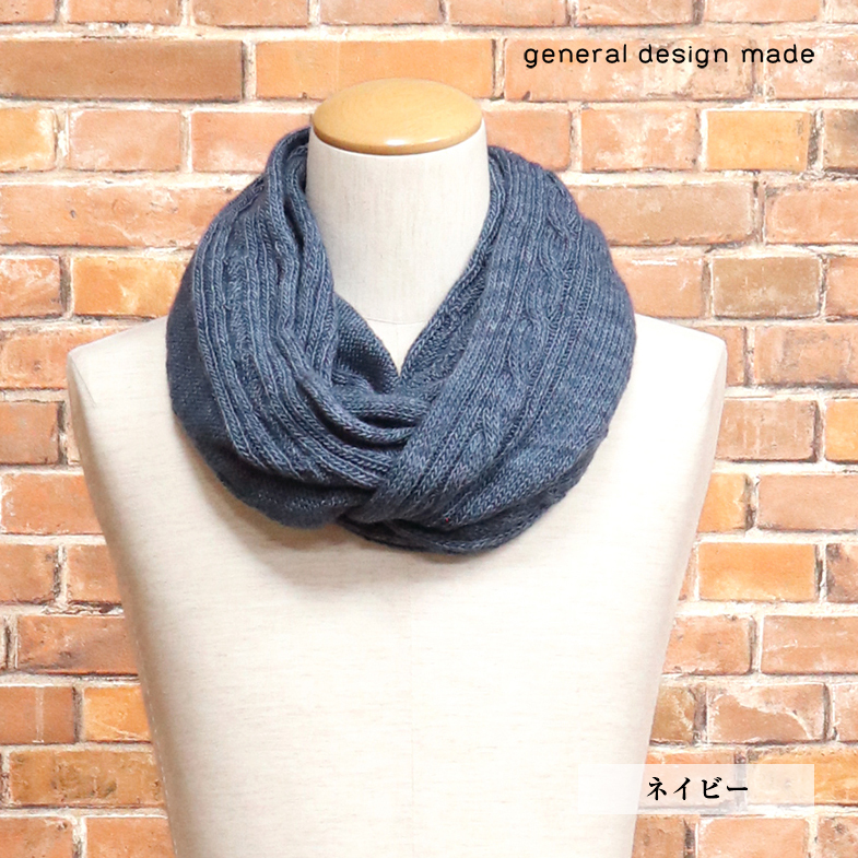 - 1円/general design made/インディゴ ケーブルニット ツイスト スヌード 日本製 ジェネラルデザインメイド 新品/紺/ネイビー/jh290/