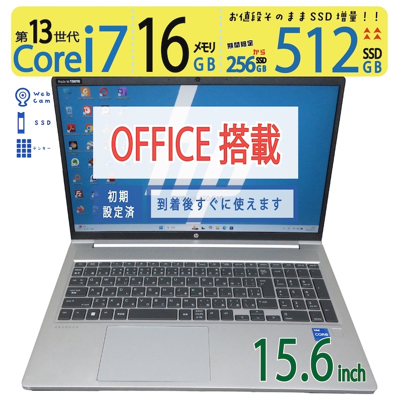 > 【超速13th i7】◆HP ProBook 450 G10 / 15.6型 ◆ Core i7-1355U [12スレッド] /高速 512GB SSD / メモリ 16GB ◆ win11 Pro / Office