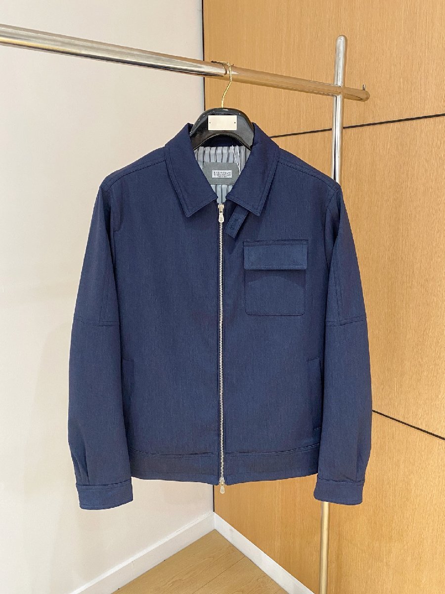 > ネイビーM●数量限定●在庫限り【送料無料】ブルネロクチネリ メンズ ジップアップジャケット, ストライプ裏地付き, カジュアル