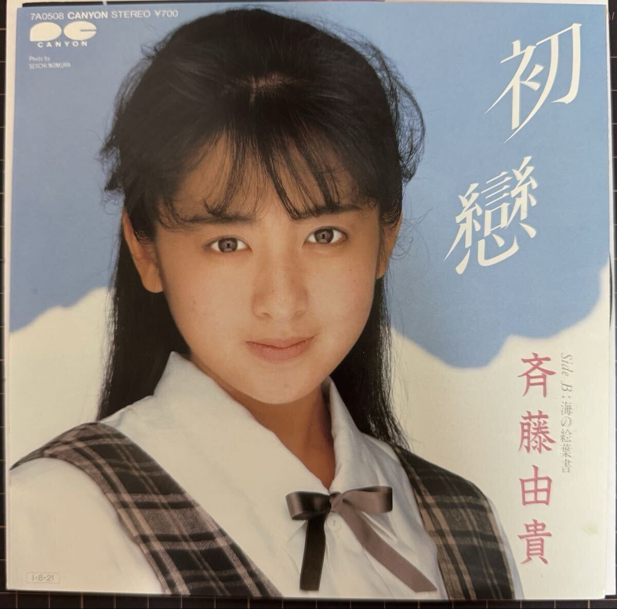 - 即決◆斉藤由貴/初戀/海の絵葉書 (良品EP) ピンナップ付 松本隆 筒美京平 10枚まで送料230円