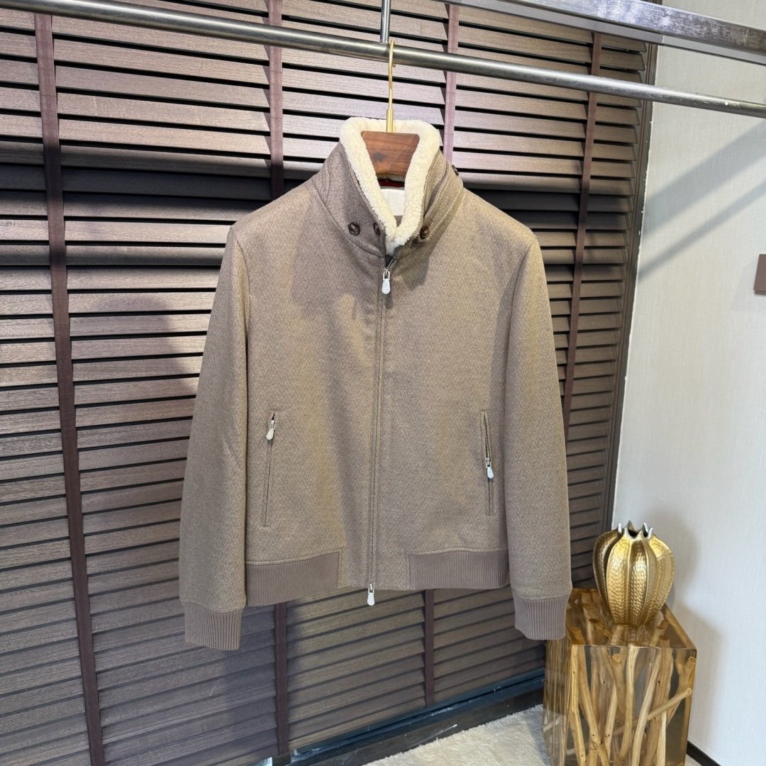 - カフェXXL★送料無料★ブルネロクチネリ★メンズビジネスカジュアルスタンドカラージャケットウールブレンド秋冬ノーカラージャケット防