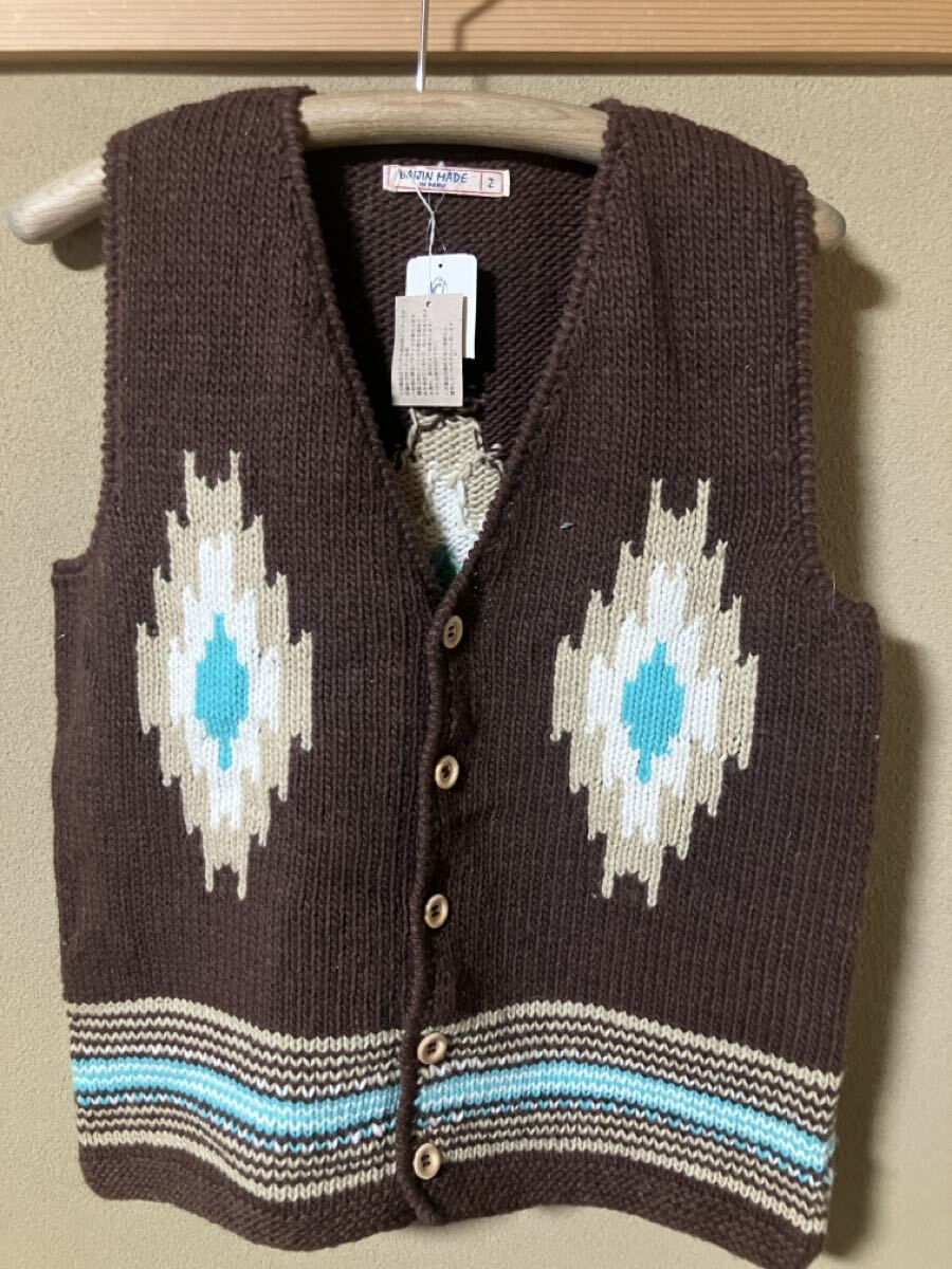 - ガイジンメイド、手編みウールオルテガ模様ベスト ブラウン/Mサイズ
