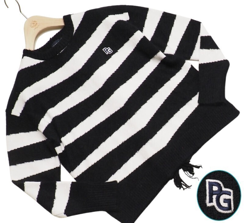 > 新品正規37400円 PEARLY GATES パーリーゲイツ アルパカ混 リアルゼブラ クルーネックニット レディース1(M)白黒(031) 1270010