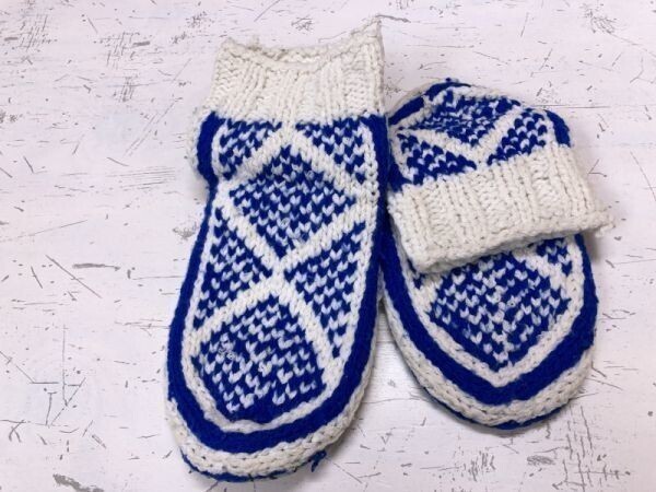 - 手縫い 手作り DIY エスニック 民族 オールド レトロ古着 ニットシューズ ルームシューズ 内履き レディース 約23cm 白/青