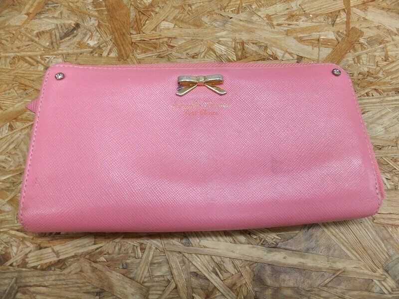> Samantha Thavasa サマンサタバサ リボンアクセント 型押し シボ革 スコッチグレインレザー 長財布 ピンク レディース
