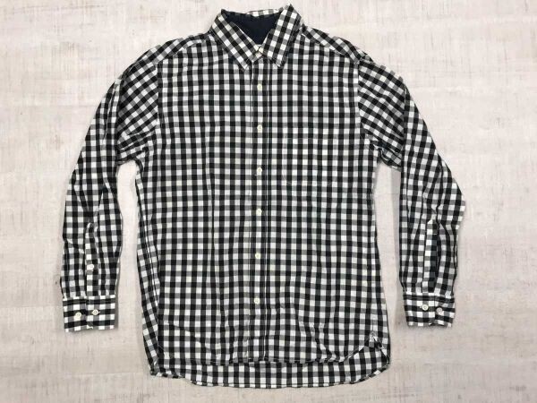 > LE JUN ル・ジュン レトロ フレンチ ギンガムチェック 小衿 スモールカラー 長袖シャツ レディース コットン100% M 白黒