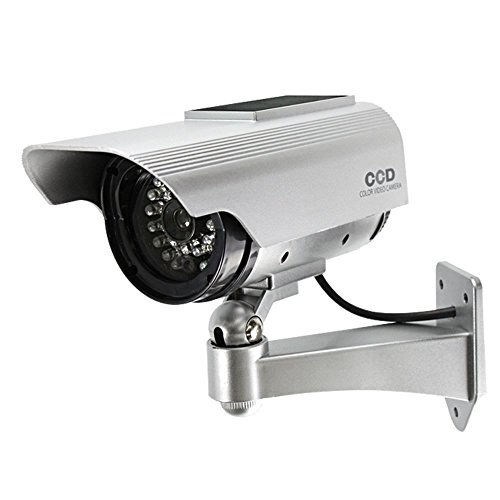 【製品機能】【材質】 ABS樹脂【カラー】 シルバー【サイズ】 約138×272×171mm(幅×奥行×高さ)【重量】 約314g【レンズ】 プラスチック【電源】 ソーラー(単4形充電池×2本付属)※ソーラーパネルを介して充電されます。【使用光源】 LEDランプ×12灯【点灯方法】 明暗センサー【製造国】 中国【製品保証】 製品到着日より1ヶ月間【セット内容】1.ダミーカメラ本体2.ネジ×3本3.アンカー×3本4.単4形充電池×2本5.日本語取扱説明書6.保証書≪注意事項≫・本製品は本物の防犯カメラに似せたダミー商品です。カメラとしての撮影機能はありません。・本製品は、盗難防止器具・災害防止器具ではありません。・ブロック・煉瓦・コンクリート壁などに取り付ける場合は、コンクリートドリル等の穴を空けるための工具が必要です。・壁の厚みが10mm以上ないとしっかりと固定できないことがありますので、壁面を必ず確認してください。・製品の設置(取り外し)などにより生じた費用および建物等への損傷やその他の損害について一切の責任を負いません。・製品ケースや本体のデザインは改良のため予告なく変更される事があります。・輸入品につき、製品箱等にキズ・汚れがある場合がございます。