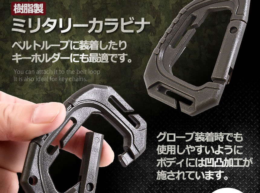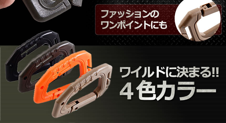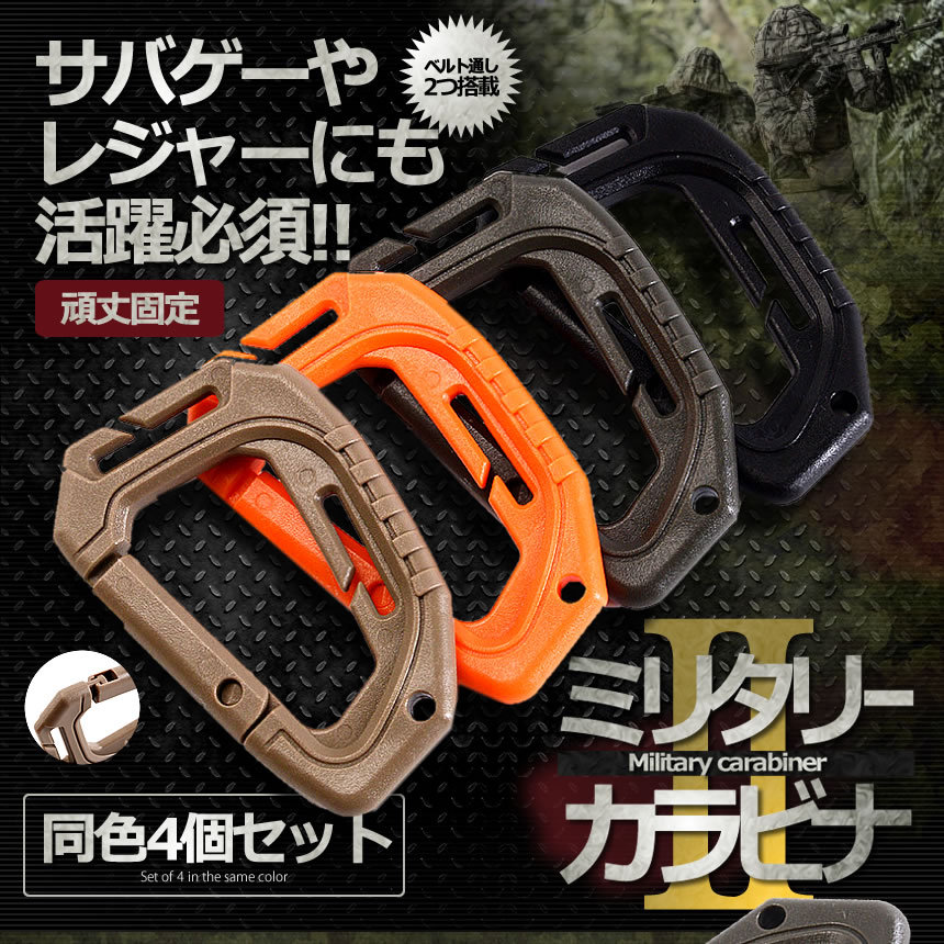 - 送料無料 ミリタリー カラビナ2 D型 4個セット 【ベージュ】 ベルト通し キーホルダー フック サバゲー レジャー